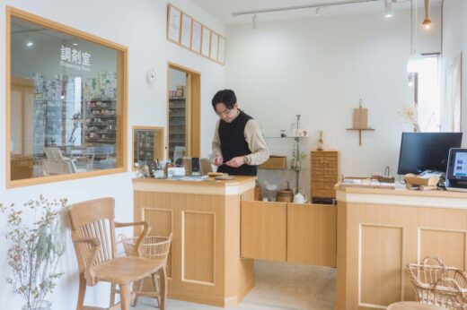 一番街から一本入ったところにできた、おしゃれな店舗。実はここ、調剤薬局なのです。店頭では国産を中心にセレクトされた癒しのアイテムも販売。体を整えたい方には、ハーブを使ったお茶がおすすめ。処方箋がなくても立ち寄れる、新しいスタイルの薬局です。
