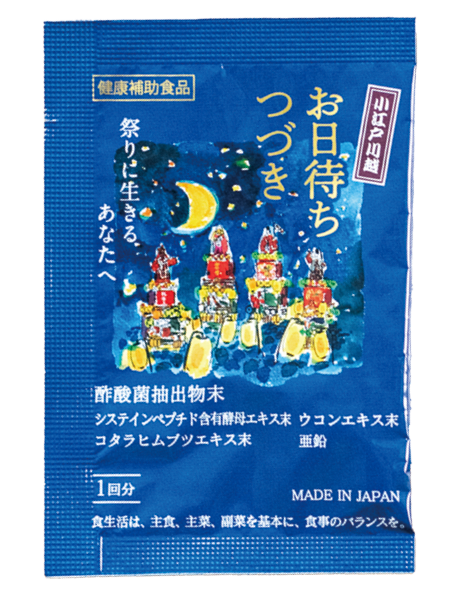 櫻井印刷所が発売した川越祭に生きるあなたにおすすめのサプリメント。一年を通して続くお日待ちを楽しむための必須アイテムです!(酢酸菌酵素配合)