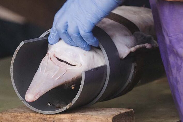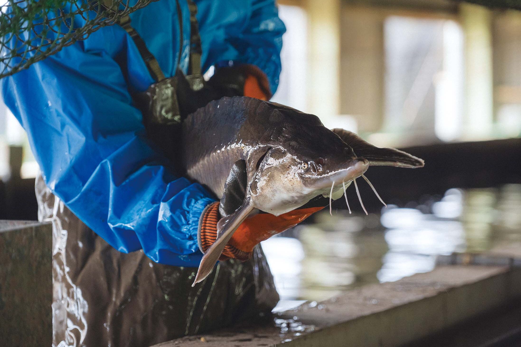 (下)大切に育てられているチョウザメ
